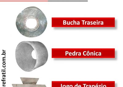 Produtos produzidos em concreto refratário de baixo teor de cimento, no formato padronizado da caldeira e curado em estufa até a temperatura de 400 ºC